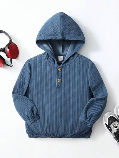 SHEIN 男童休闲宽松半开襟纽扣卫衣,适合秋冬季穿着 - 綠色 - 查看 1