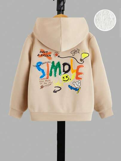 SHEIN 男小童連帽後圖案套頭衫鬆動和舒服夾克適用於休閒穿戴 - 杏色 - 查看 1