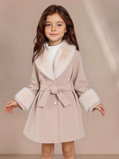SHEIN 少女毛绒领外套,温暖又可爱 - 杏色 - 查看 1