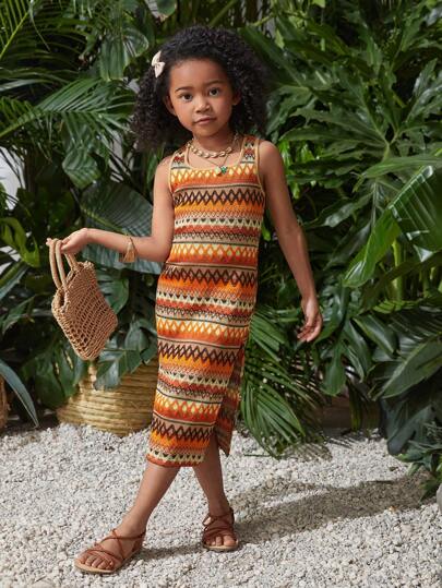 SHEIN 年輕女孩針織提花無袖修身休閒裙,圓領 - 彩色 - 查看 1