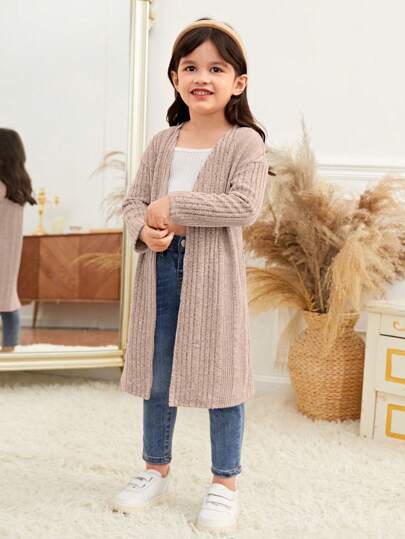 SHEIN 女小童開門襟條紋針織外套 - 杏色 - 查看 1