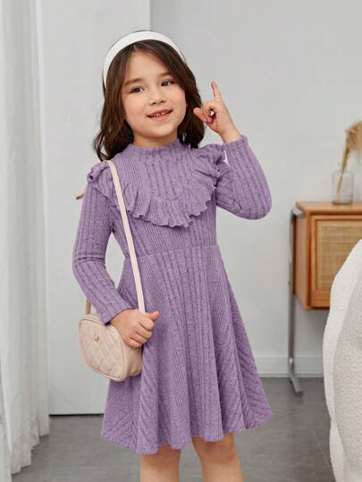 SHEIN Leap Crew 女小童荷葉邊小高領洋裝 - 紫色 - 查看 1