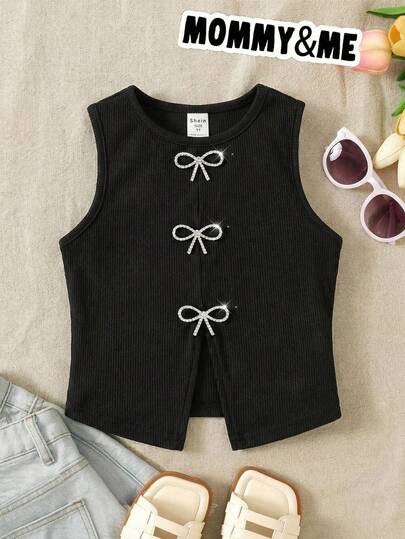 SHEIN 女童纯色针织休闲背心 - 彩色 - 查看 1