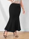 SHEIN Privé 大码优雅日常简约精致浪漫魅力办公室/通勤舞会舞蹈约会时尚垂坠压褶喇叭袖收腰束腰白色连衣裙,适合女士,春/秋