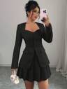 SHEIN Privé 缺口領荷葉邊腰帶彈力緊身連體褲