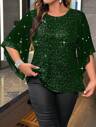 SHEIN Privé 女式大尺碼休閒優雅短袖T恤,適合日常穿著、度假和姐妹聚會。 實色杏色,小蓋袖和修身款式