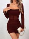SHEIN Privé 素色腰帶荷葉邊襯衫連衣裙