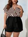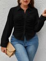 SHEIN Privé 大码女式夏季简约优雅办公室工作领褶皱无袖衬衫