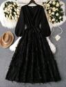 SHEIN Privé 大码优雅知性通勤连衣裙,带荷叶边袖子和下摆