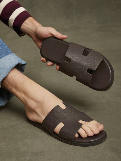 SHUZIA 男士纹理咖啡色拖鞋-高端质感,防滑舒适,夏季鞋春季鞋春假复活节母亲节礼物 - 咖啡棕 - 查看 1
