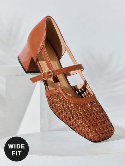 SHUZIA 女士宽楦钩编拉菲草玛丽珍鞋 - 棕色 - 查看 1