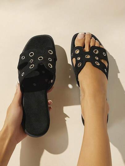 SHUZIA 女士玉米造型裝飾休閒平底涼鞋,適合日常外出 - 黑色 - 查看 1