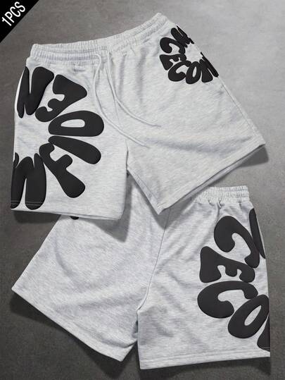 SLATEMANN 男士字母印花抽绳腰休闲短裤,夏季