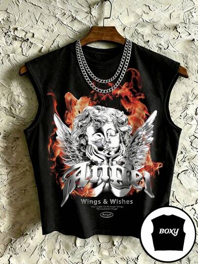 STEELVANCE 男士夏季街头字母和天使印花圆领背心