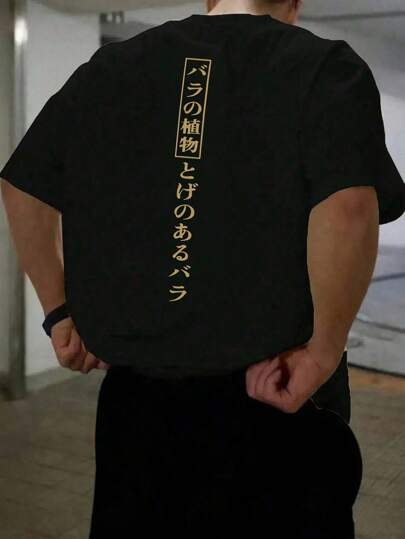 SU ER 男士时尚印花宽松短袖T恤 | 精致设计 | 夏季必备 | 易于搭配,展现您的风格 - 黑色 - 查看 1