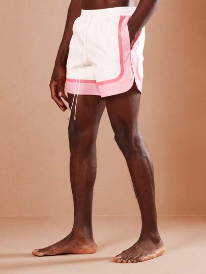 SUMWON 优质运动短裤高性能泳裤复古风格拼色设计沙滩冲浪夏季休闲运动短裤舒适训练水上运动 - 粉色 - 查看 6