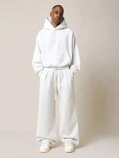 SUMWON 冬季必备家居服 宽腿套装 褶皱慢跑裤 连帽衫 街头服饰 运动休闲 舒适家居服 - 灰色 - 查看 1