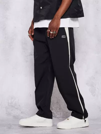 SUMWON 撞色镶片直筒尼龙长裤 - 黑色 - 查看 1
