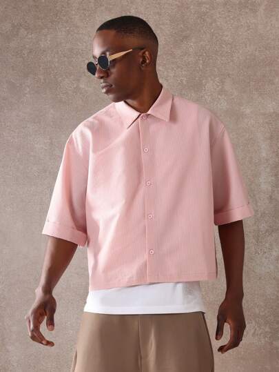 SUMWON 纹理纽扣衬衫短款设计现代简约宽松休闲夏季轻便办公室时尚领短袖街头时尚