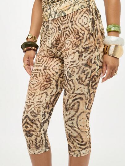 SUMWON WOMEN 动物印花卡普里紧身裤高腰蛇皮图案网眼面料时尚夏季度假派对俱乐部晚装 - 彩色 - 查看 1