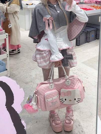 1 件 Sanrio Hello Kitty 粉色 PU 运动健身包,大容量旅行行李包,实用手提包,拉链开合,是旅行、户外运动、健身、街拍的理想礼物 - 彩色 - 查看 14