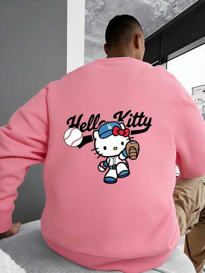 Sanrio 男士卡通印花圆领长袖休闲卫衣,冬季款 - 粉色 - 查看 6