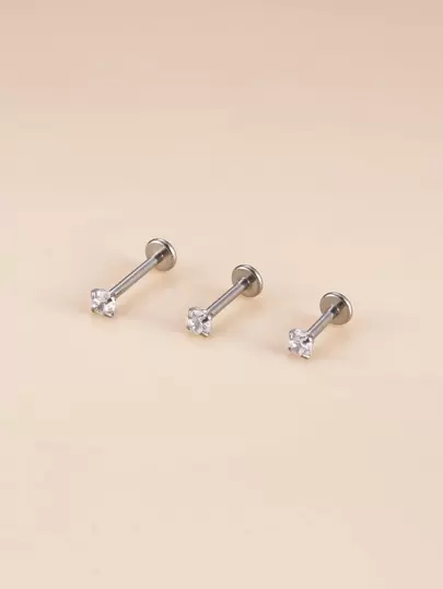 3入組/套時尚方晶鋯石裝飾唇釘不銹鋼適合女士&男士穿孔需要隔膜身體鏈 - 銀色 - 查看 3