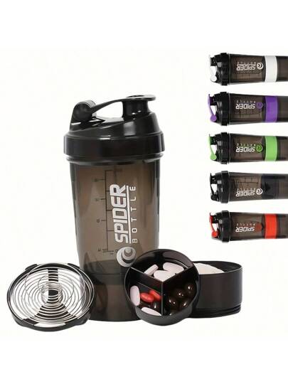 1 件塑料蛋白粉摇摇瓶,带混合弹簧,便携式防漏设计,适合健身房锻炼、户外健身和圣诞礼物 - 彩色 - 查看 12