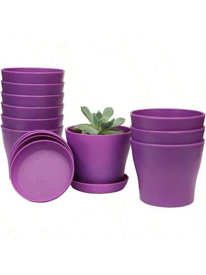 TDHDIKE 10 Pcs Plastic Planters Indoor Pots, Mini Flower Seedlings Nursery Flower Pot With Pallet, Modern Decorative Gardening Containers - 紫色 - 查看 1
