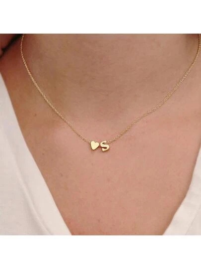 心形和字母吊饰项链情人节 - 金色 - 查看 1