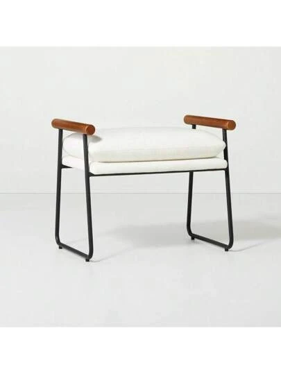 Hearth & Hand W/Magnolia Furniture Ottoman Metal Wood Living Room Cream Black - 1 - 查看 8