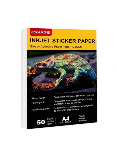适用于喷墨打印机的自粘式相纸光面贴纸纸,A4 8.3 X 11.7 英寸,50 张,135 Gsm 36Ib - 白色 - 查看 1