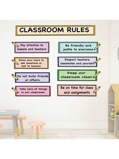 自粘式学校教室规则墙贴婴儿托儿所引言墙贴壁画、返校、学校用品 - 黑色 - 查看 5