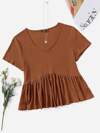 SHEIN VCAY 度假编织拼布设计方领短袖 A 字裙女士长裙美国背心套装蝴蝶结上衣