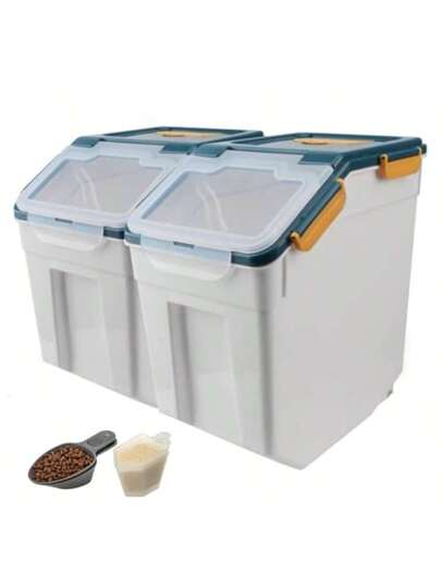 Set Of 2 25KG Airtight Flour Storage Containers Rice Food Storage Buckets Y Food Dispenser Large Grain Sealed Containers With Wheels  Storage Bins Blue - 藍色1 - 查看 4