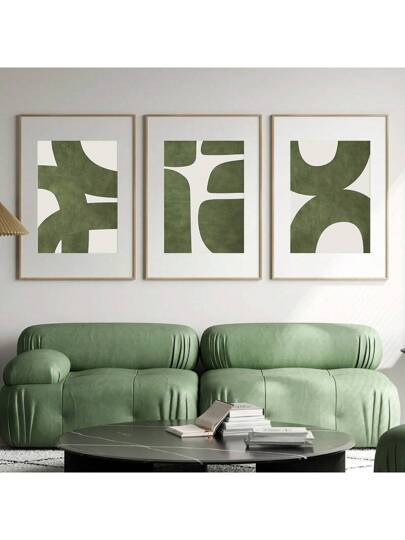 一套三幅中世纪绿色现代简约风格墙面艺术印刷品,抽象画廊帆布海报,复古墙面装饰,春季装饰,复活节礼物,适用于客厅、卧室、厨房、咖啡馆、酒吧、办公室、走廊、家居和房间装饰艺术品,不含画框 - 橄欖綠 - 查看 10