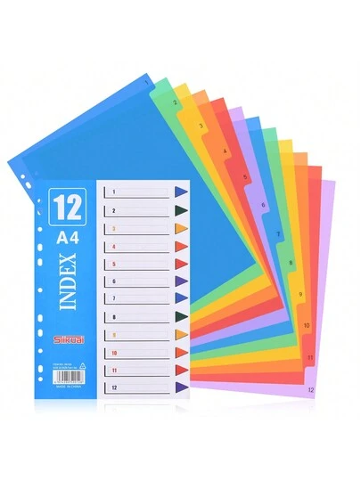 5入組彩色a4檔案夾索引分隔板,粉彩a4實用封面卡紙索引分隔板,超寬型絕佳適用於辦公室檔案整理,1-12 - 彩色 - 查看 1