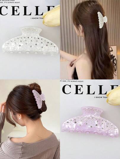 1 件轻奢醋酸纤维全钻高端发爪夹发夹发夹下巴夹发夹发束发夹发夹,适合女性日常旅行、聚会、旅行时作为发饰使用。发饰 - 彩色 - 查看 13