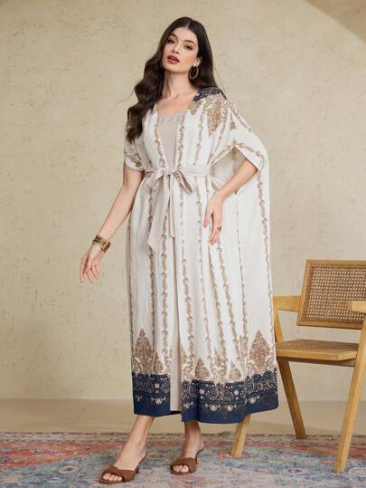 Seusyu 2 件套女士夏季简约连衣裙与夹克套装,适合春夏季度假的时尚 - 藍色 - 查看 1