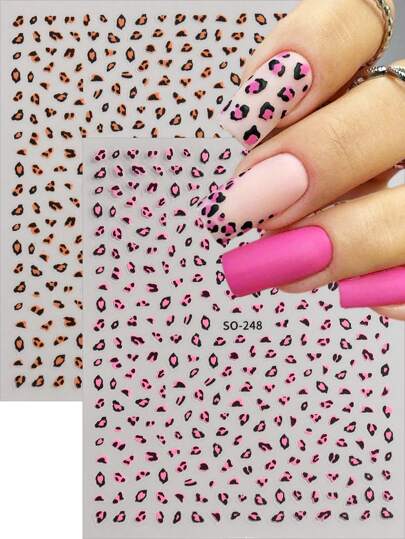 性感粉色豹纹3D美甲贴纸 秋冬风 玫瑰红咖啡色 Y2K性感狂野美甲装饰贴片 2片装 美甲用品