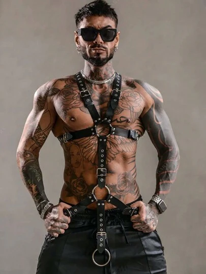 1 件朋克风格街头束腰带黑色 PU 皮革镂空后背带设计夜总会派对节日表演男士时尚配饰适合外出装婚礼派对和礼物万圣节配饰,万圣节服装秋冬配饰万圣节服装,适合青少年、青年、男士、休闲、户外、运动、度假、毕业礼物、生日、日常穿着 - 黑色 - 查看 7