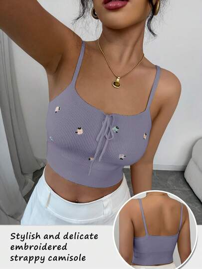 Chiquease 时尚刺绣系带吊带针织毛衣 - 淡紫色 - 查看 6