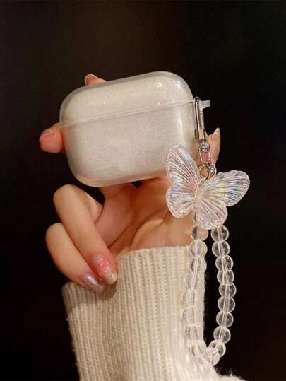 闪亮耳机盒,配闪光蝴蝶和水晶链 - 彩色 - 查看 1