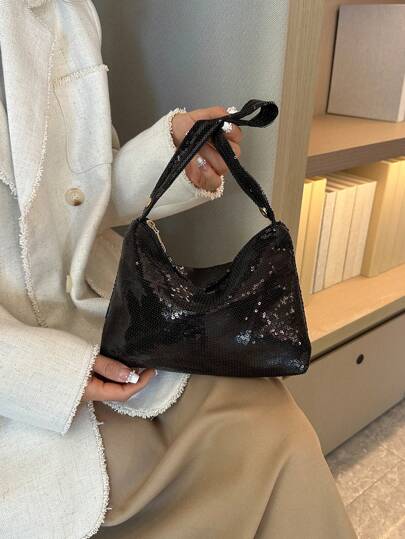 闪亮包包,时尚镶钻手提包,镶钻手包,满钻洋气腋下包,夏季网红爆款单肩包,小众晚宴包 - 黑色 - 查看 1