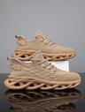 男士简约纯色针织网眼系带卡其色运动鞋,舒适男女通用休闲赤脚袜鞋