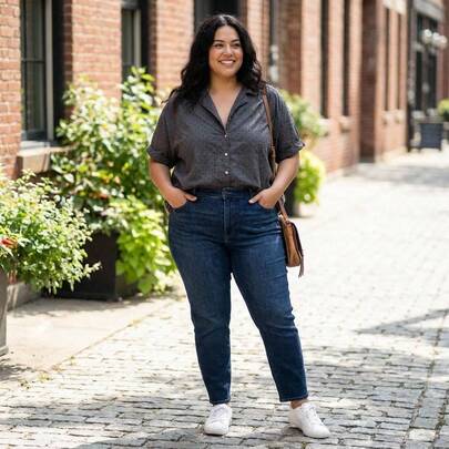 短袖纽扣衬衫 - - gris - 查看 1