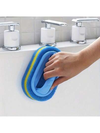 淋浴刷 | 符合人体工程学的手持海绵刷,双色设计 - 多功能手动清洁刷,适用于浴缸、厨房、浴室等 - 非常适合清洁瓷砖、炊具和污渍、浴室配件 - 彩色 - 查看 1