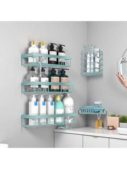 Shower Caddy Shelf Organizer 5 Pack, No Drill Black Shower Shelves,Self Adhesive Bathroom Caddy,Shower Storage Accessories, Wall Mounted Shampoo Holder - 薄荷綠 - 查看 7