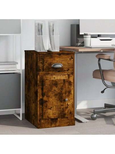 Side Cabinet With Drawer Smoked Oak 40x50x75 Cm Engineered Wood
