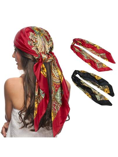 女士真丝头巾 缎面印花头巾 包发时尚配饰 方形头巾 - 彩色 - 查看 2
